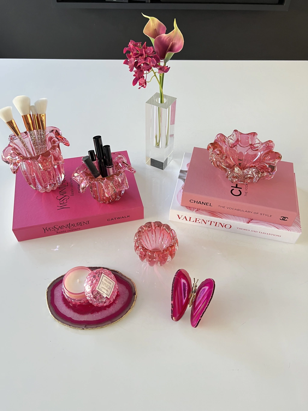 Borboleta em pedra natural Ágata Pink, peça decorativa delicada que pode ser usada sobre livros, mesas laterais, ou onde desejar