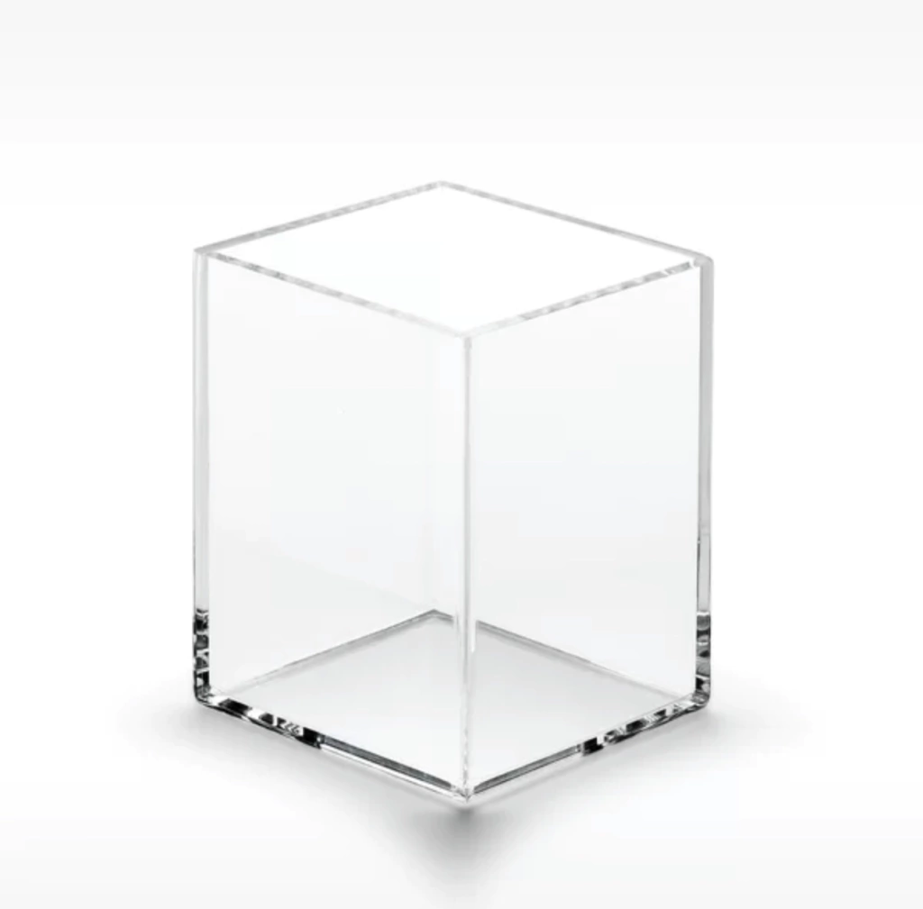 Feito todo em acrílico transparente de alta qualidade, este cubo possui uma estrutura robusta de 10 mm de espessura, garantindo durabilidade e elegância.