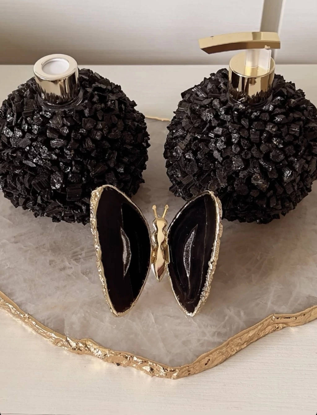 Eleve a proteção e a sofisticação do seu ambiente com o nosso Kit Lavabo em Turmalina Negra com Acabamento em Dourado. Reconhecida por sua poderosa capacidade de absorver e neutralizar energias negativas, a turmalina negra é uma pedra ideal para quem busca um ambiente harmonioso e protegido. Este kit exclusivo combina a beleza natural das pedras com um toque luxuoso de dourado, trazendo um ar de modernidade e refinamento à decoração. A escolha perfeita para quem aprecia peças únicas e deseja um espaço elegante e acolhedor.