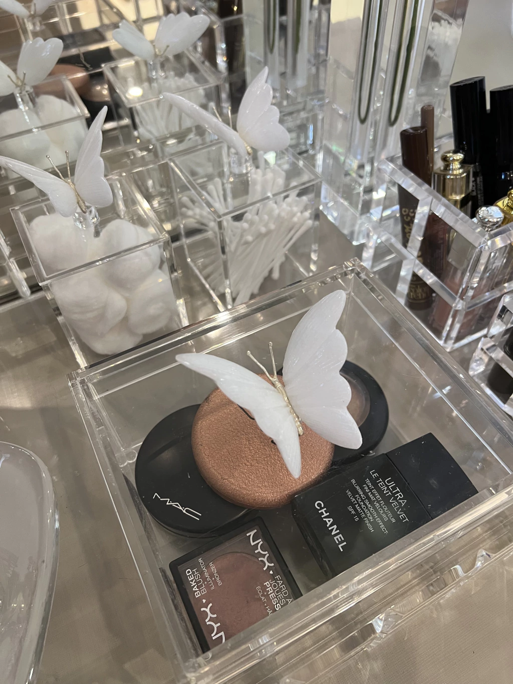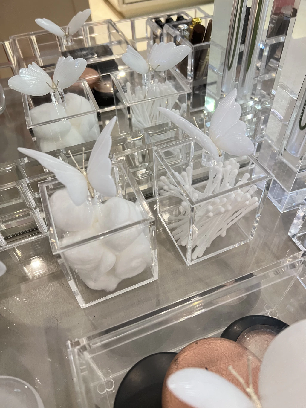 ORGANIZE E DECORE SUA PENTEADEIRA OU ESPACO DE MAQUIAGENS COM PEÇAS EXCLUSIVAS EM ACRILICO E MURANOS.