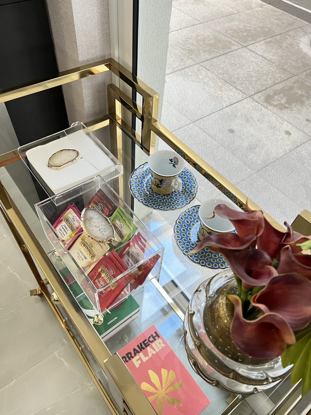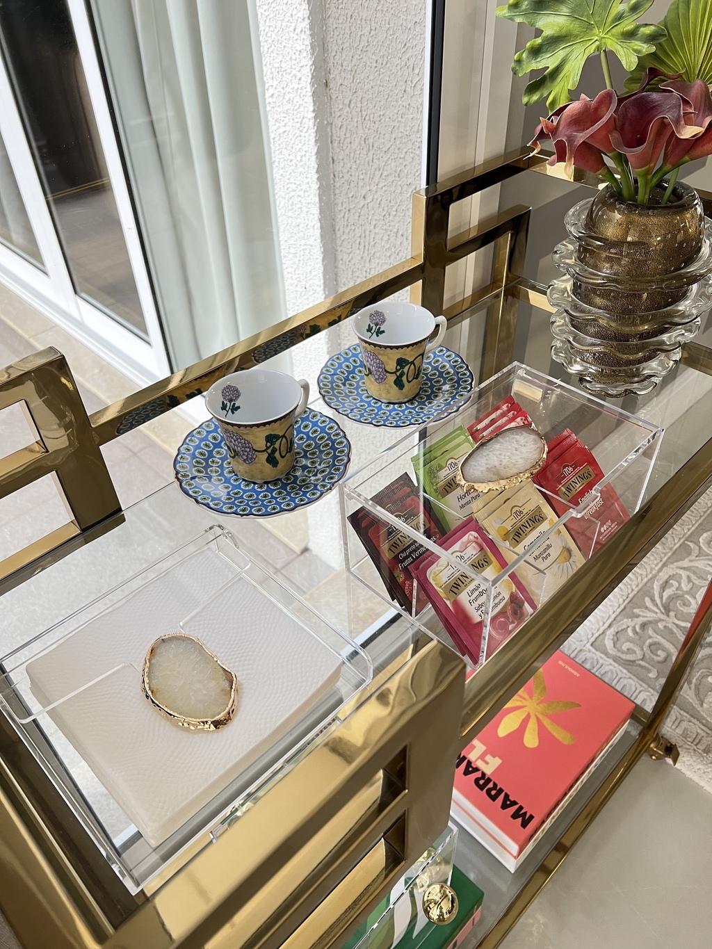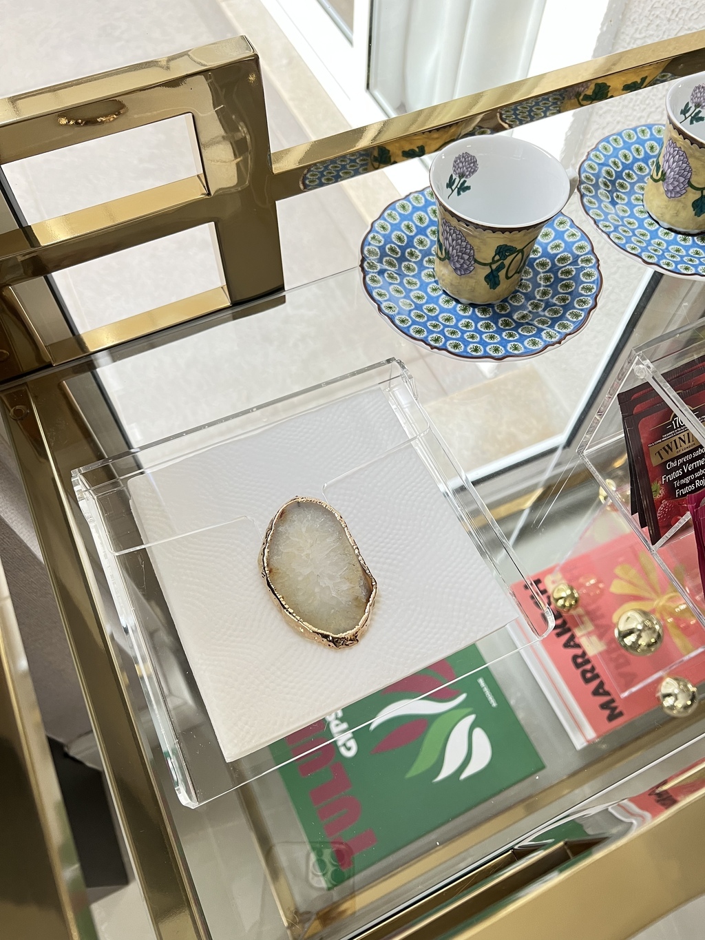 Porta guardanapo em acrílico com aplicação de borboleta em pedra natural rosa